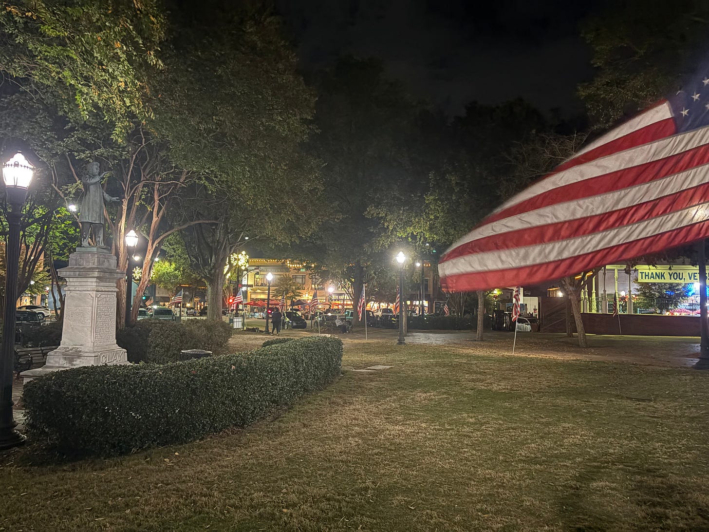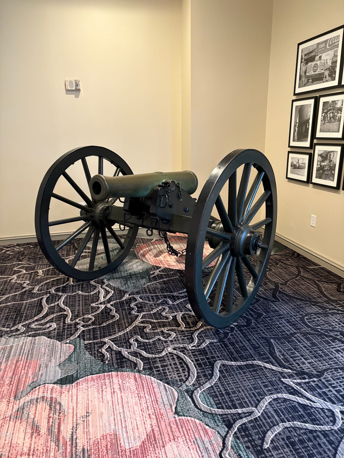 This particular job is a months-long bridge repair and he’s supervising a six person crew, and so living, for the time being, at the Marietta Hilton and Resort, next to the Gone With the Wind Museum and across the street from the Confederate Cemetery under the supervision of the battle flag flapping in the warm Autumn breeze.